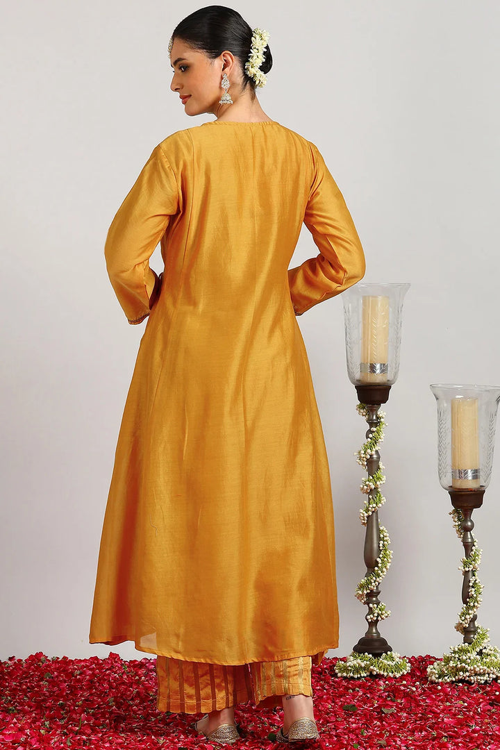 Pattern/ Craft: Chanderi Silk Kurta with hand-finished Gota Zari borders | Care: Dry Clean Only |