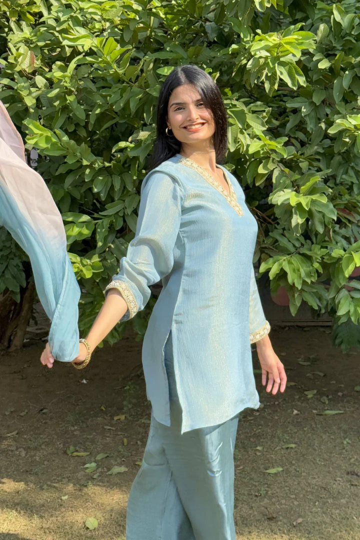 Crinkled Tissue Kurtee with Modal Silk Pallazzo Pants