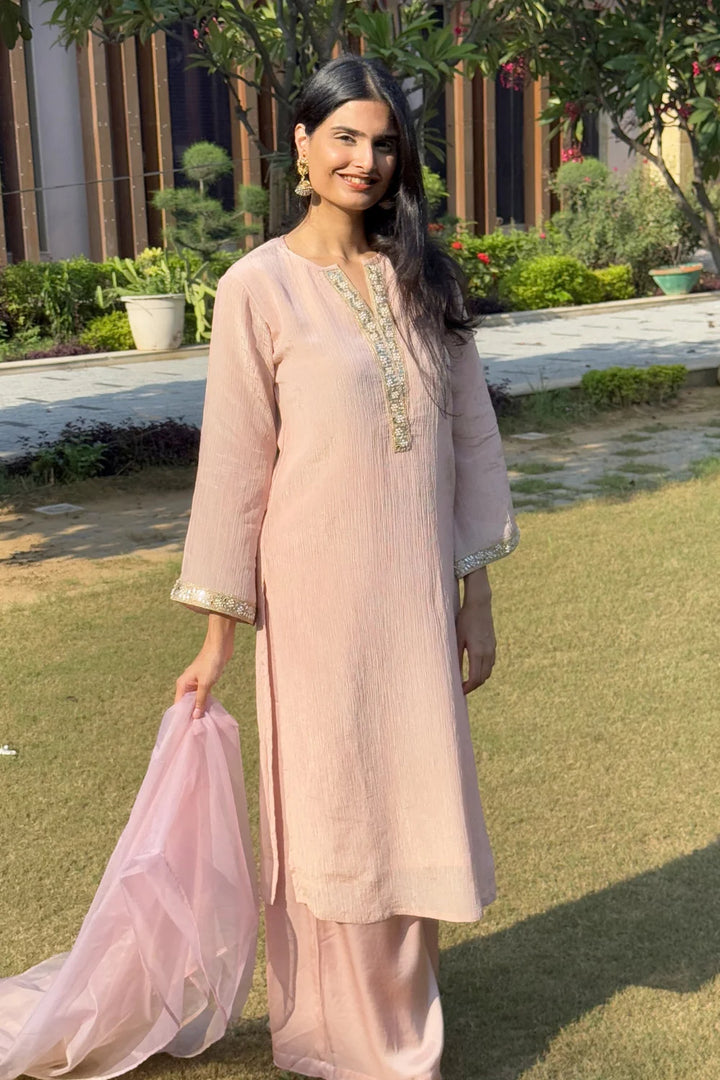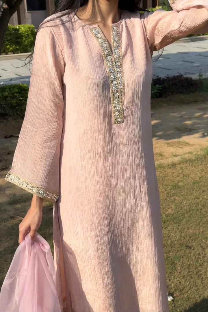 Pink Crinkle Tissue Silk Kurta (Set of 2)